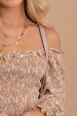 Our Be Unforgettable Gingham Peplum Top is composed of 80% Polyester 20% Cotton. Wash inside out in cold water. Tumble dry low, or hang or lay flat to dry. Please do not bleach.