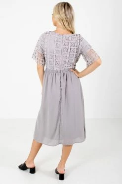 Our Girls Night Gray Satin Knee-Length Dress is composed of 100% Polyester. Hand wash cold. Hang or lay flat to dry. Please do not bleach.