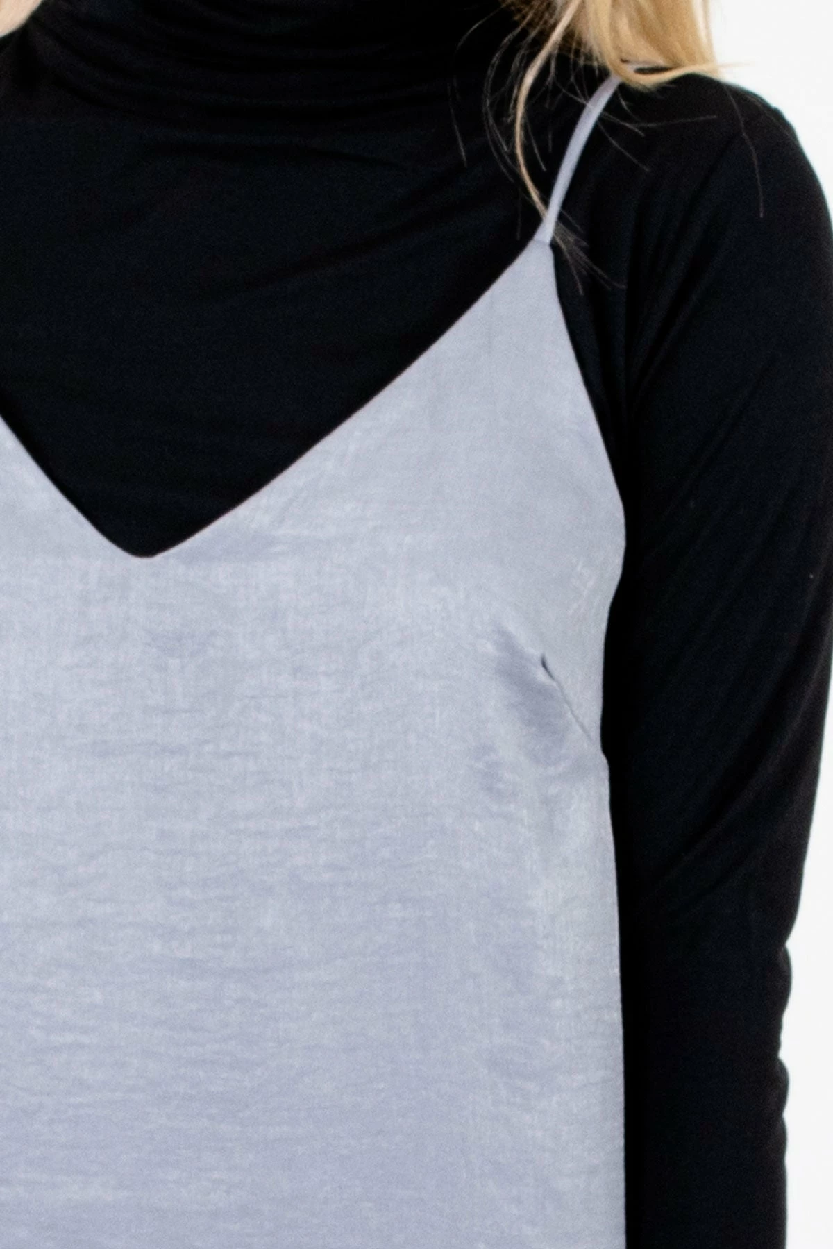 Every girl needs a fun dress in her wardrobe and our new Girls Night Gray Satin Knee-Length Dress is a must-have! This beautiful piece is a solid light slate gray color. It features a v-neckline, spaghetti straps, and side hem slits! We’re in love with the satin like material and that’s so trendy right now. The partial lining adds the perfect finishing touch! Pair our Girls Night Gray Satin Knee-Length Dress with sleek black heels to create a look that’s perfect for a night out on the town!