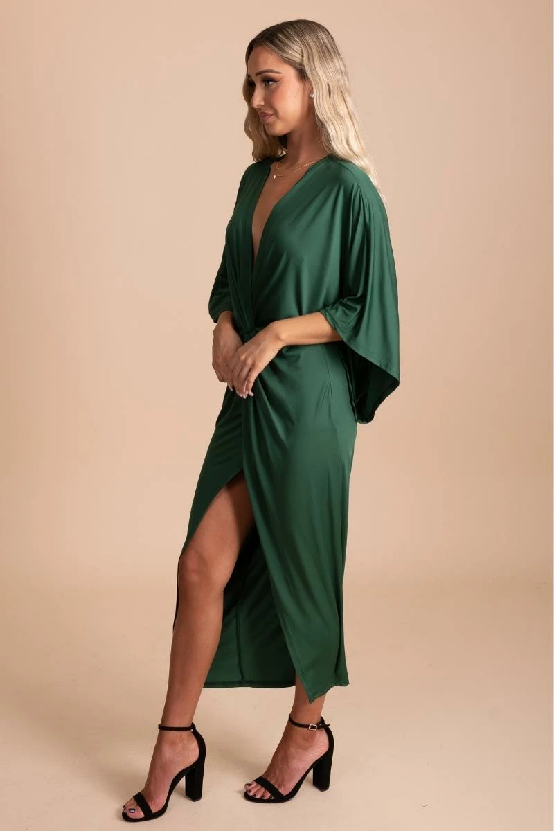 Our Gracefully Me Midi Wrap Dress is so cute for this holiday season! The gorgeous dress features 4 color options, a midi length, and a thigh-high slit! The plunging v-neckline and flowy sleeves add the cutest finishing touch! Pair your Gracefully Me Midi Wrap Dress with your favorite heels to create an effortlessly chic outfit this season!