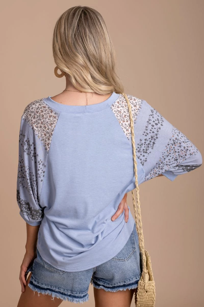 Our Infinite Love Floral Sleeve Top is the perfect everyday top! This piece is a solid light brown color with gray, blue, and white floral accents on the sleeves. It features a round neckline, 3/4 sleeves, and long length! Pair our Infinite Love Floral Sleeve Top with skinny jeans and sneakers to create a cute everyday outfit!