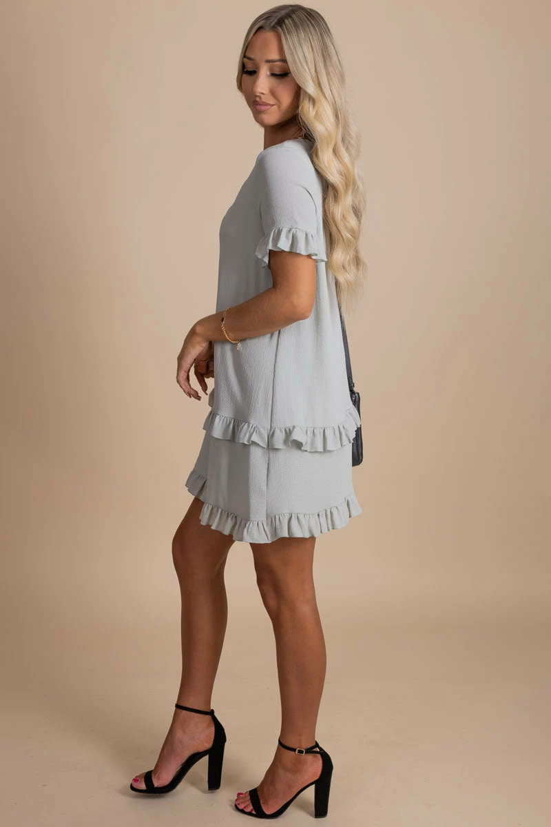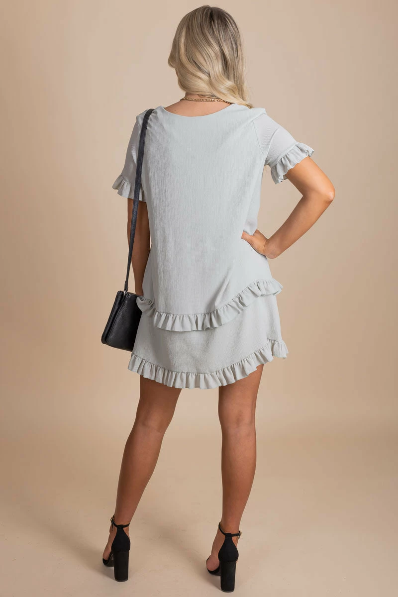 Our Extraordinary Life Ruffle Mini Dress is composed of 100% Polyester. Hand wash cold. Hang or lay flat to dry. Please do not bleach.