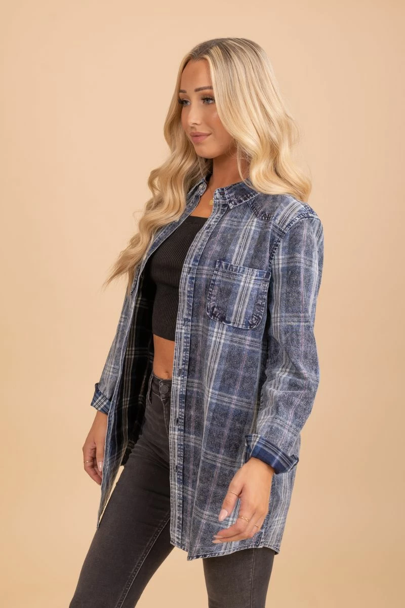 Our Be Who You Are Blue Plaid Top would be so cute for a night at a pumpkin patch, a Sunday stroll, or to throw on in chilly weather!