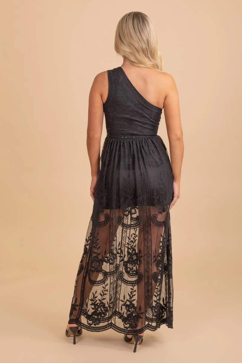 Spark a new romance in our It’s My Day One Shoulder Lace Maxi Dress! This gorgeous dress is a black color and it has stunning details. It features a one shoulder sleeve, partial lining on the skirt, and the cutest lace details. We are in love with everything about this dress!