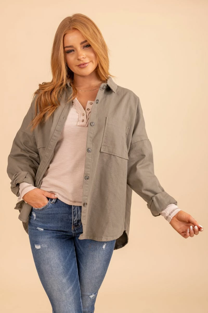 Wholesale Fashion Trends Love More Green Button Up Jacket