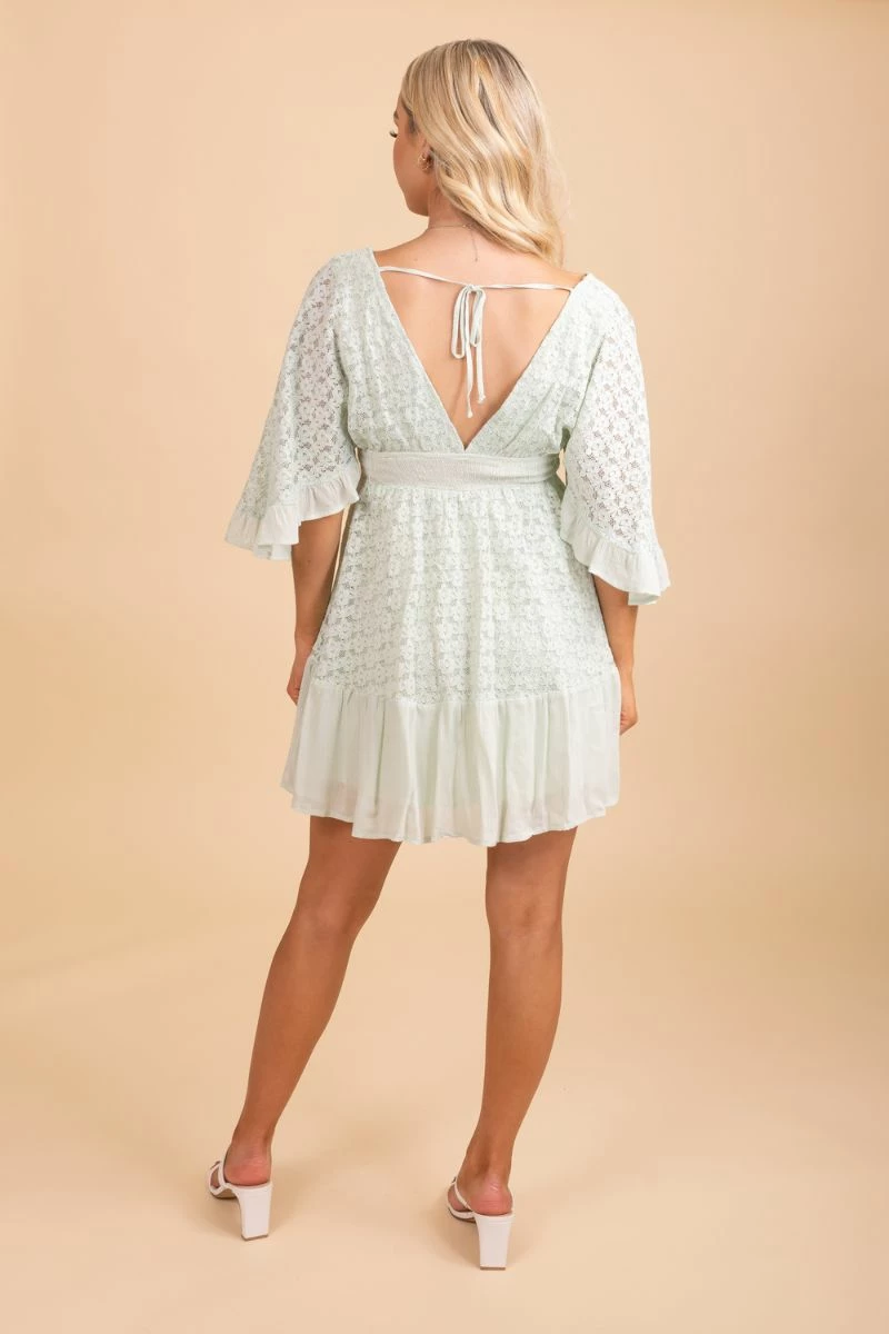 Our new No Feeling Is Final Lace Mini Dress will quickly become your new go-to! We’re in love with the perfect mini-length, flutter sleeves, and the lace details! This dress comes in the cutest mint color!