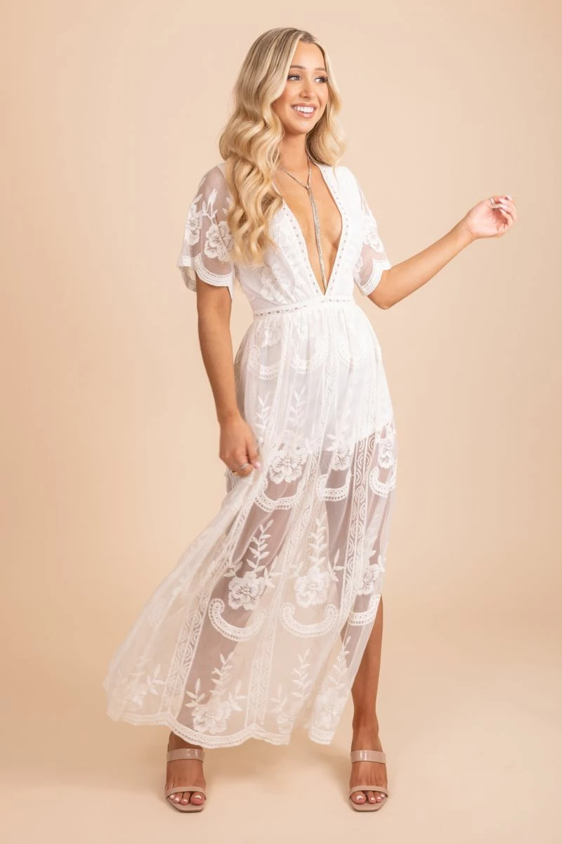 Wholesale Fashion Trends The Big Day Lace Romper Maxi Dress