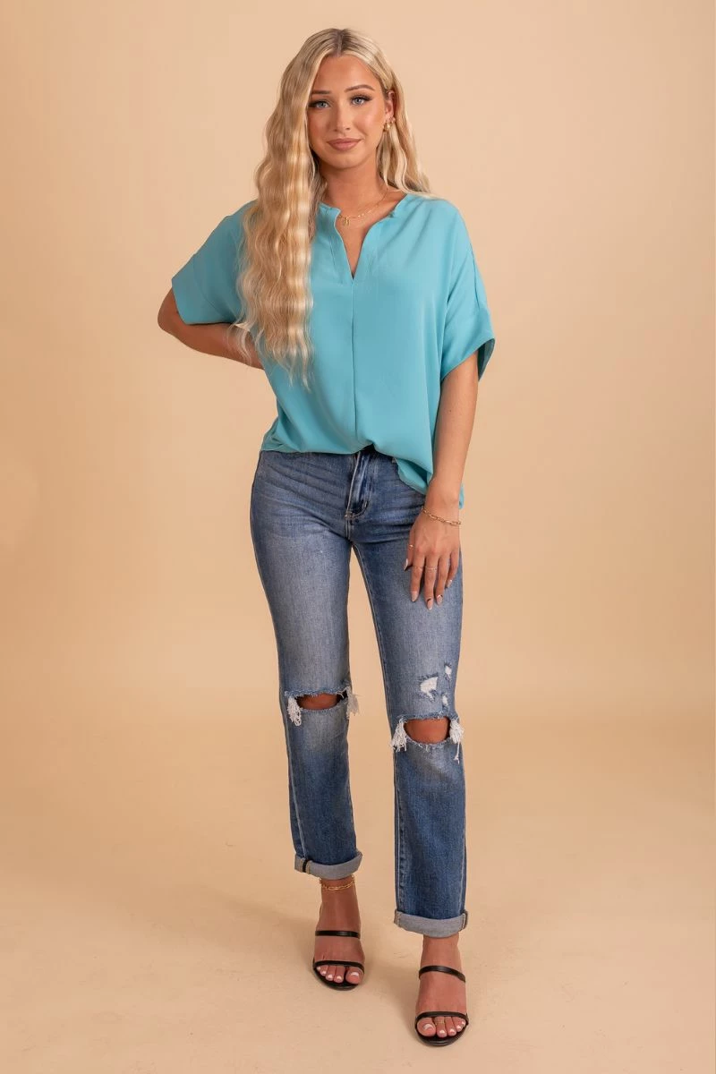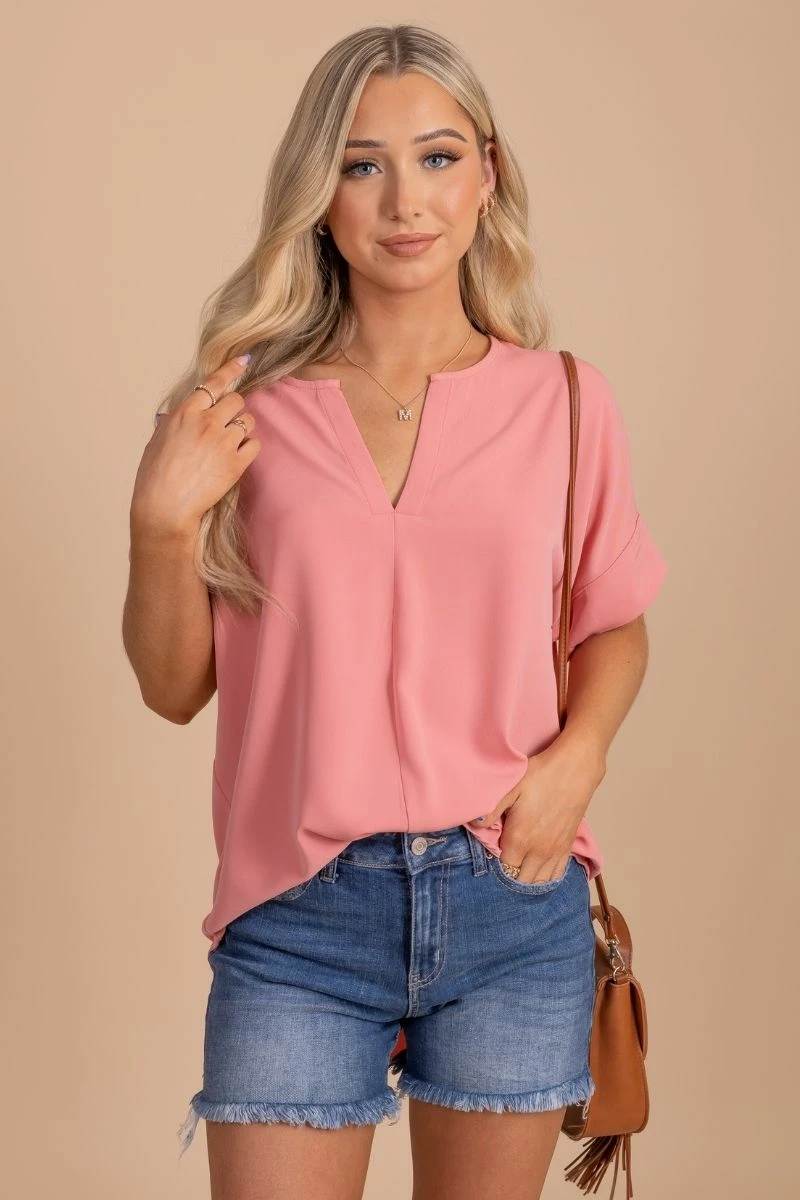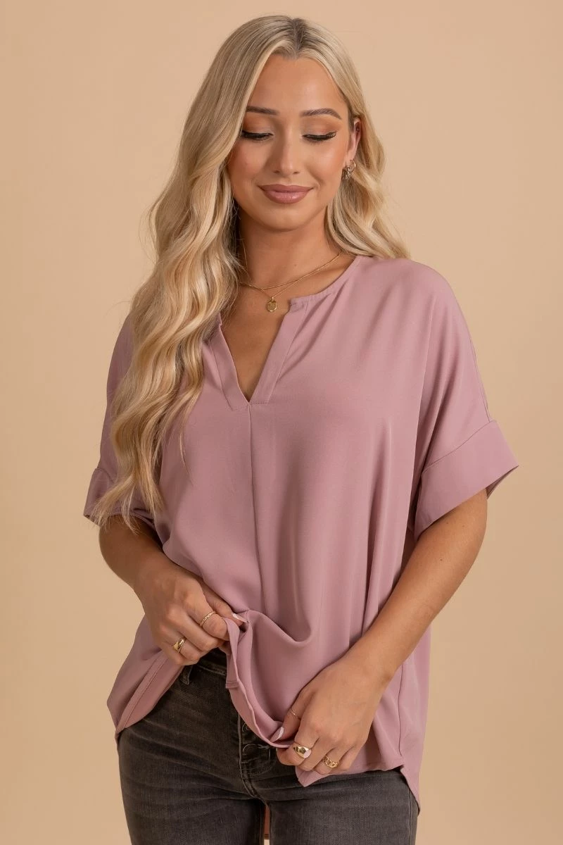 We’re in love with our new Born for This Short Sleeve Blouse and all of its adorable details! This cute blouse features a split v-neckline, cuffed sleeves, and a subtle high-low hem. We’re obsessed with the high-quality material that makes it comfortable and easy to wear! Pair our Born for This Short Sleeve Blouse with your favorite jeans and heeled sandals for a cute, everyday look! Try wearing it with gray slacks for your next day at the office.