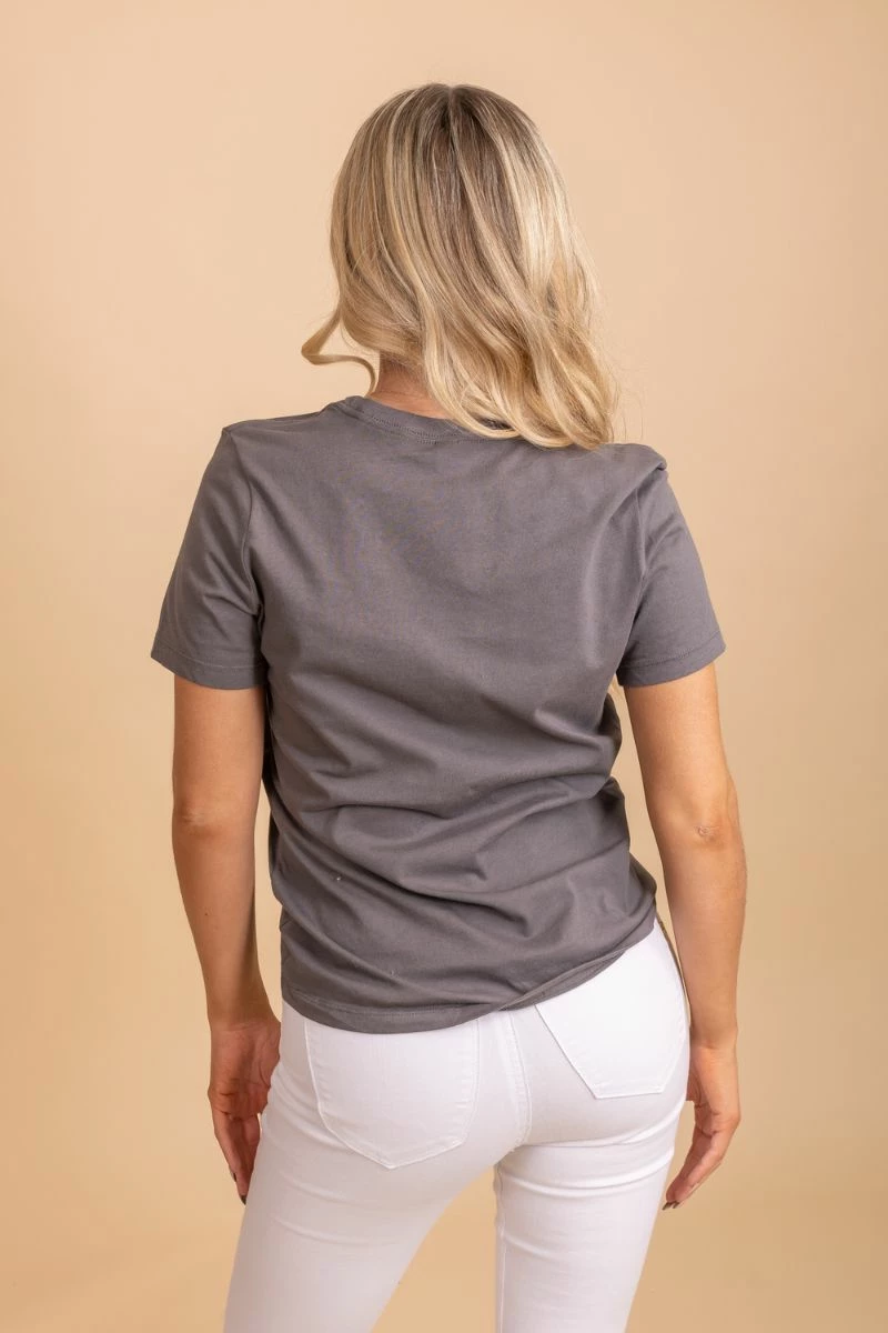 Pair this top with a cute jean jacket and your favorite pair of pants for a cute trendy look!