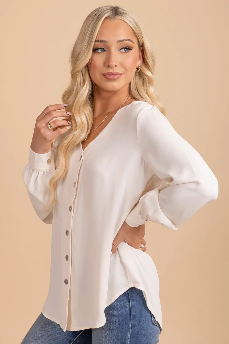 Our new Never Say Goodbye Blouse can be dressed up or down for any occasion! This cute top comes in multiple color options. It features a v-neckline, button-up front, and high-low hem. We’re in love with the high-quality, lightweight material that creates a comfortable and flattering fit! Pair our Never Say Goodbye Blouse with slacks for a day at the office, or try wearing it with distressed skinny jeans for an everyday look!